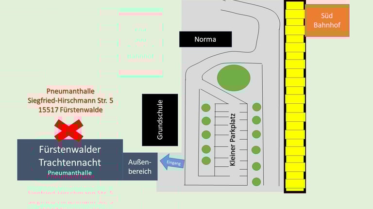 Willkommen in der Mehrzweckhalle der BSG Pneumant in Fürstenwalde Süd! Unsere Location ist nicht nur zentral gelegen, sondern bietet auch eine hervorragende Anbindung an den öffentlichen Nahverkehr. In unmittelbarer Nähe finden Sie sowohl Zug- als auch Busverbindungen, die eine bequeme Anreise ermöglichen. Zudem sind die Autobahnauffahrten in der Nähe, und es stehen ausreichend Parkplätze zur Verfügung – ein großer Vorteil für unsere Veranstaltung.